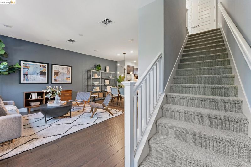 Stylish 3-Level Condo with Modern Finishes | 3BD / 3.5BA | Alameda Built in 2016, this well-maintained 3-bedroom, 3.5-bathroom condo offers approximately 1,784 sq ft of thoughtfully designed living space across three levels. The main living area features an open-concept kitchen, dining, and living room layout with access to a private balcony off the kitchen. The kitchen includes a large center island with breakfast bar seating, granite countertops, built-in cabinetry, and a spacious walk-in pantry, providing ample storage and functionality. Flooring throughout the home includes a combination of tile, hardwood, and carpeted bedrooms. All bedrooms offer comfortable separation across levels, and the home includes 3 full bathrooms plus a powder room off the kitchen for guests. Laundry is conveniently located on the third floor. Additional features include two-zone air conditioning, Nest thermostat system, and abundant thoughtful storage throughout. The property includes a 2-car attached garage and is located adjacent to a green community space. Guest parking is available along Diller Street. Convenient Alameda location with access to local amenities, shopping, and commuter routes.