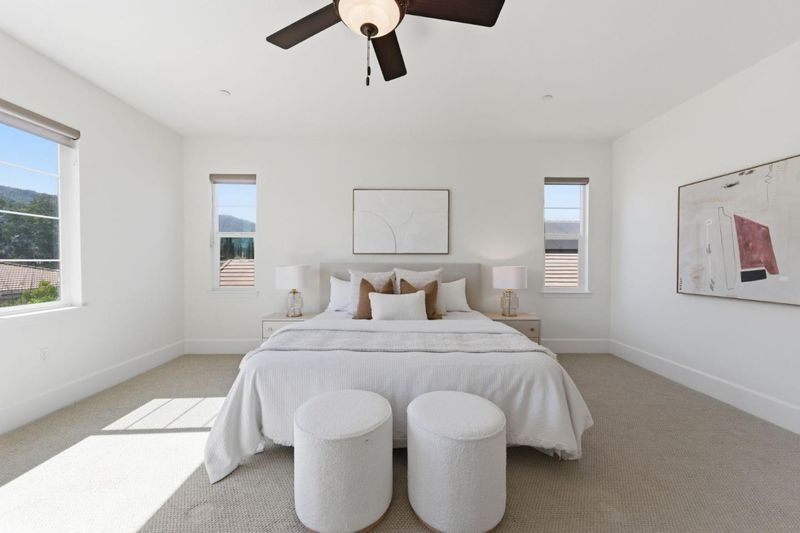 Welcome to this beautifully maintained 5-bedroom, 4.5-bathroom home built in 2017, located in a desirable Gilroy neighborhood. This spacious residence features an open-concept floor plan with abundant natural light, ideal for both everyday living and entertaining. The well-appointed kitchen includes a large island, granite countertops, stainless steel appliances, and ample cabinetry, seamlessly connecting to the dining area and family room. A bedroom and full bathroom on the main level provide added flexibility for guests or multi-generational living. Upstairs, the primary suite offers a comfortable retreat with mountain views, a spa-like bathroom, and generous closet space. Additional bedrooms are well-sized and versatile. The low-maintenance backyard offers a functional outdoor space for relaxation or entertaining. Additional features include high ceilings, recessed lighting, and modern finishes throughout. Conveniently located near parks, shopping, dining, and major commuter routes. Move-in ready.