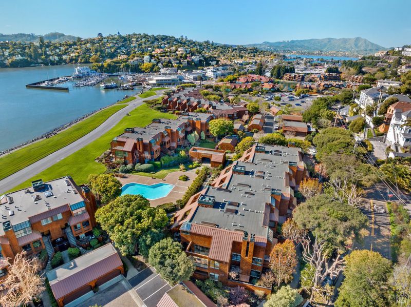 Luxurious and sophisticated end-unit townhome, located in the sought-after Point Tiburon Bayside development. Spacious living areas, high-quality finishes, a great layout, and a private location. Blocks to downtown Tiburon's Main Street with gourmet restaurants, the San Francisco and Angel Island ferry service, and waterfront pathways. The light-filled living/dining room features a wood-burning fireplace, designer carpeting, recessed lighting, large windows, and sliding glass doors that open to two entertainment decks with views of the bay and Belvedere Island. The beautifully designed kitchen features granite countertops, hardwood floors, a center island with counter seating, and high-end stainless steel appliances. The inviting family room features a fireplace and sliding glass doors opening to a private deck. Sophisticated built-in bar area with granite countertops, custom cabinetry, and a beverage fridge. The upper level features a spacious primary suite, two comfortable bedrooms, a stylish full bath, and a laundry closet. The primary suite features a wood-burning fireplace, built-in cabinetry, a walk-in closet, picturesque water views, a spa-like bathroom, and sliding glass doors opening to a sunny view balcony. Detached garage and 1 dedicated uncovered parking spot.