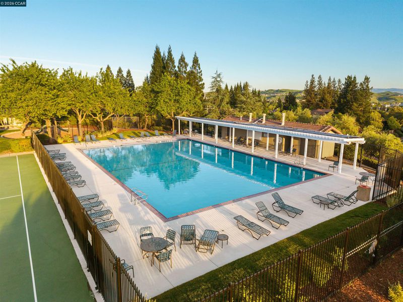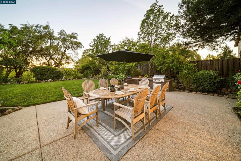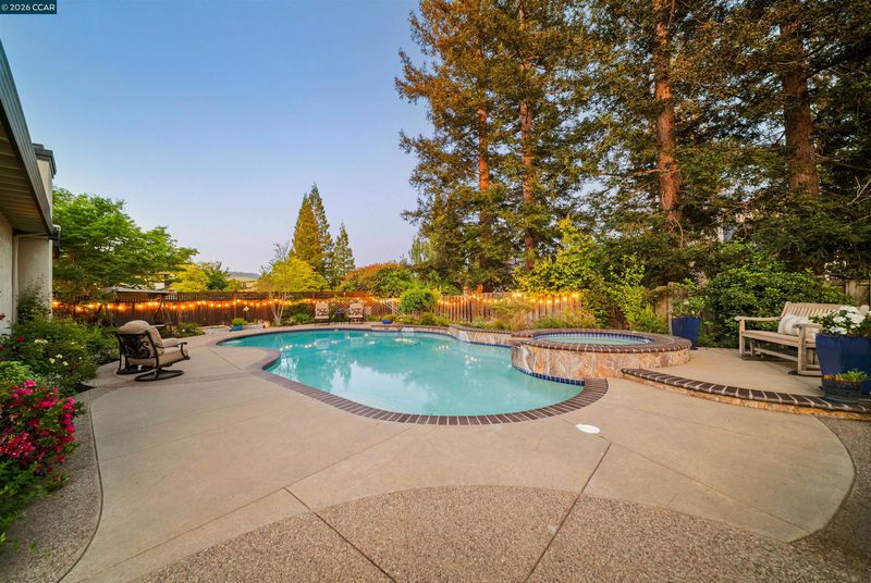 Prestigious gated community of Bettencourt Ranch. You are greeted by lush, mature trees, rose garden & charming front entry. Also features vegetable garden beds, fruit trees: lemon, pear & orange.The grand living room w/soaring ceilings, beautiful wood flooring & elegant formal dining area. Expansive windows & cozy fireplace w/ marble surrounds create a sophisticated space. The eat-in kitchen has a 5-burner gas cooktop, built-in ss appliances, custom cabinetry, granite countertops, center island, & spacious pantry. The adjacent family room is light & bright w/ sliding glass door that opens to backyard. Highly desirable floor plan includes downstairs bedroom & bath, for guests or home office. Upstairs primary suite offers retreat w/ fireplace use as a sitting area, gym or office. Spa-inspired bathroom has dual vanities, soaking tub, &large stall shower w/ bench, along w/new shower doors. Two additional bedrooms and a spacious hall bathroom complete the upper level. Step outside to enjoy a sparkling pool, gazebo, built-in BBQ/smoker & multiple areas to relax or host gatherings. Newer windows, LED lights, travertine & hardwood floors.Ideally located w/in walking to community cabana, newly updated pool & sports courts, including pickleball. Walk to first 8 years of school. SRVSD.