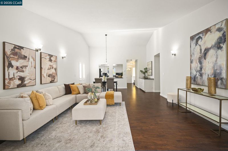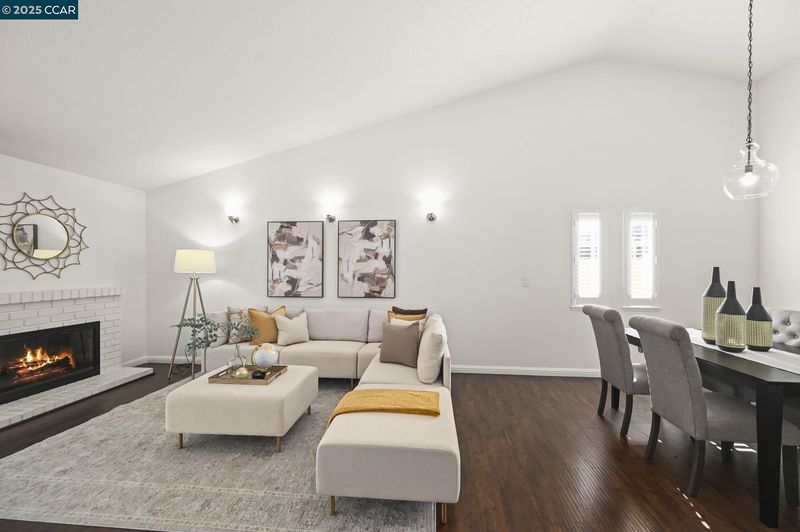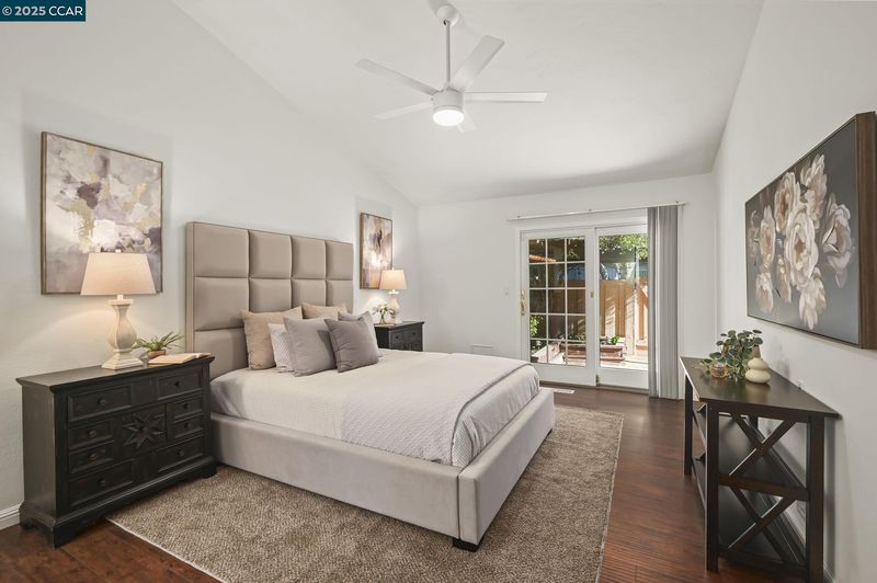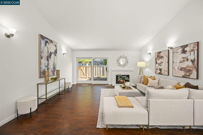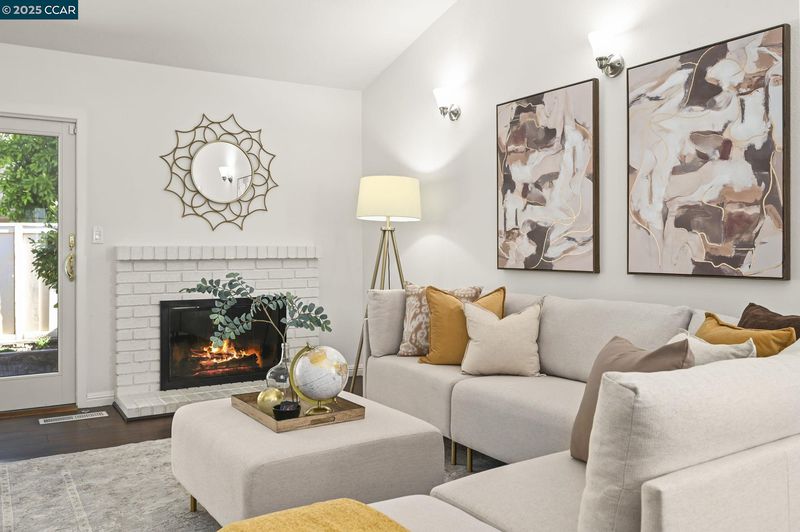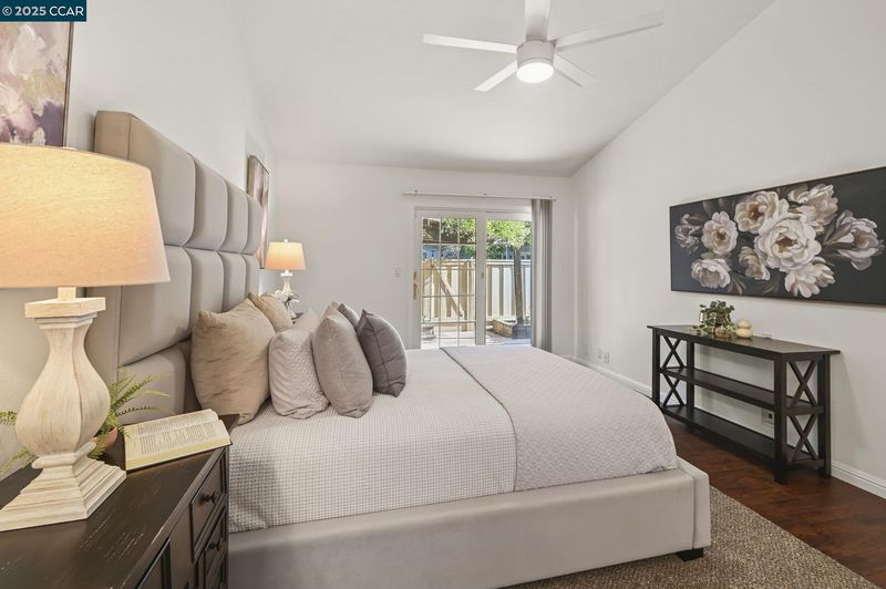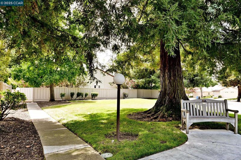 Centrally located end unit in beautiful Bancroft Village. Freshly painted and staged. Open kitchen w/additional bank of cabinets, blue marble counters, newer electric range, newer dishwasher; recessed lighting. Spacious living/dining room with vaulted ceilings, gas fireplace, sconces, side window for additional light. Primary bedroom with vaulted ceiling, ceiling fan, walk-in closet; sliding glass door to backyard. Customized vanity; newer shower. Secondary bdrm overlooks the oversized front courtyard, has ceiling fan and recessed lighting. Second full bath with newer vanity, newer lighting and tub/shower. Nice sized backyard with arbor, raised landscape beds and exit gate. Community has two pools, two tennis courts, clubhouse, large green belt area with picnic tables, private access to Heather Farms Park at end of Apollo Ct. Close to Counrywood Shopping Center, John Muir Hospital, WC & PH BART and vibrant downtown Walnut Creek. Northgate Schools.