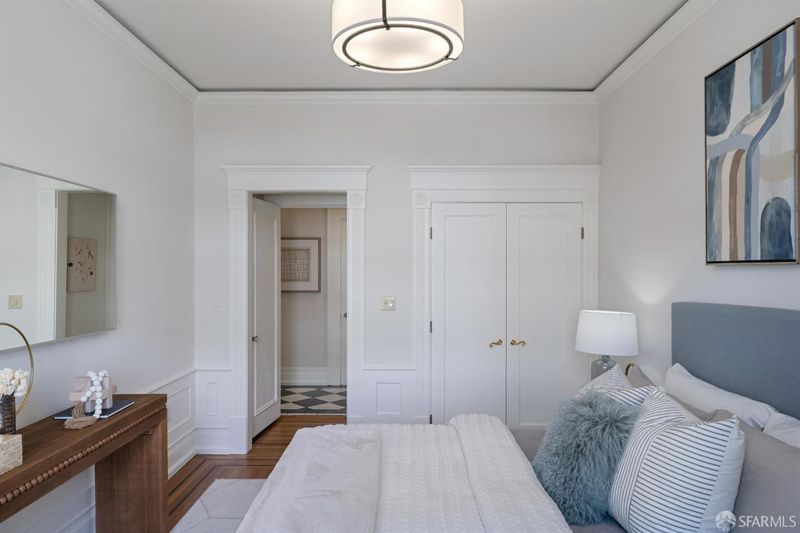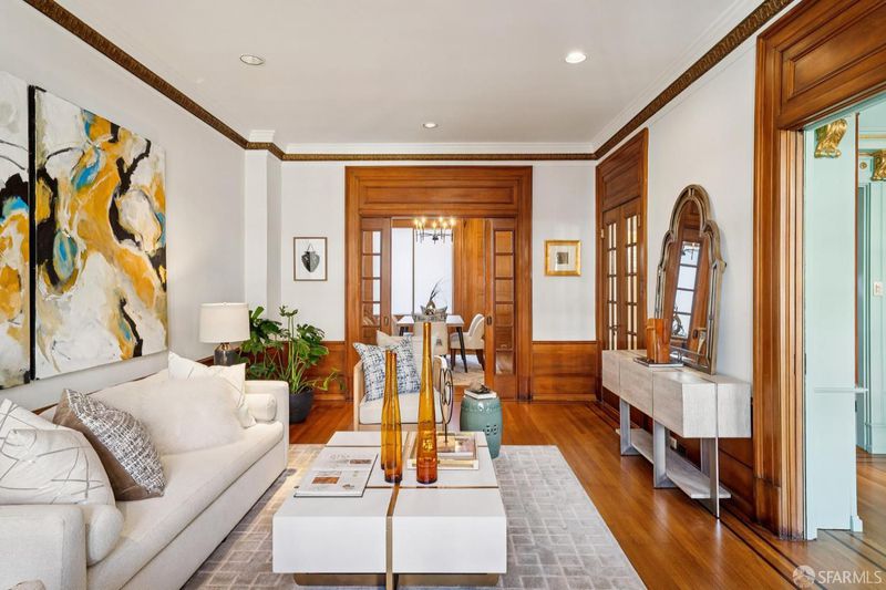 Where Parisian charm meets San Francisco innovation, this stunning Beaux-Arts condo at the historic Belgravia offers a lifestyle that today's modern tech professionals will love. Just a short commute to SF's thriving AI hub, this elegant Beaux Art style condo boasts rich finishes, incredible architectural detail and a wonderful floor plan making it ideal for both entertaining and working remotely. The formal entry has high ceilings, dramatic crown moldings and marble floors that lead to a well-scaled living room with gorgeous hardwood floors with inlay detail, a Juliette balcony and abundant natural light. Classic wood and glass pocket doors open to the formal dining room with striking wood paneling and deep crown moldings. The stylish, remodeled kitchen is open and airy and has stainless steel appliances including a Fulgar induction range and an abundance of pantry storage. The large primary bedroom has a spacious walk-in closet and is served by the remodeled full bath with marble finishes and two matching storage cabinets. The second versatile bedroom can easily function as your home office or an extension of your living space. The updated powder room adds convenience for hosting guests. A large private storage room offers added space for sports gear or as a hobby room. The Belgravia is a well-maintained, boutique building that has undergone extensive upgrades including newer building electrical, upgraded passenger elevator, exterior refacing & newer boiler system. The building features a dedicated on-site manager; 2 elevators, guest apt for the owners' guests. Enjoy this incredible urban oasis just steps to the heart of San Francisco's tech hub!