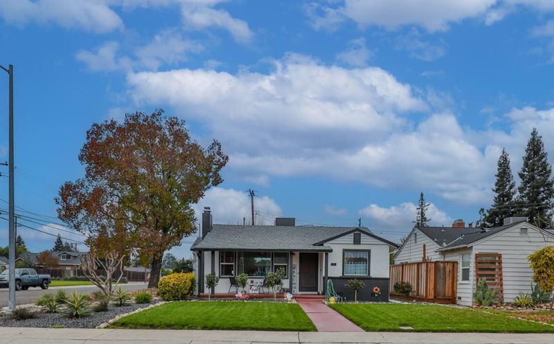 Classic 1950s charm and thoughtful updates on a big lot in the sought-after Lakewood neighborhood, known for its friendly neighbors and strong sense of community. Freshly painted white with black trim and terra-cotta porch, walkways & driveway create inviting curb appeal. Featuring 2 bedrooms, 2 bathrooms, a cozy living room with gas fireplace, carpeted living areas, hallways and bedrooms, with hardwood flooring believed to be underneath. Functional kitchen includes wood cabinetry, finished countertops, linoleum flooring, breakfast bar, double stainless-steel sink, nook-style eating area, plus side-by-side refrigerator and gas oven/range included. Separate formal dining area adds flexibility. Main hall bathroom has been remodeled with neutral gray finishes, white stone countertop, gray tile shower and tile flooring. Second bathroom features shower stall, ceramic tile and updated lighting. Outdoor highlights include a private courtyard, lawn area, covered patio, wooden gate and newer fencing on the east side. Corner lot offers extra parking. Additional features include central heat and air, dual-pane windows & composition roof. Excellent location within walking distance to Lodi Lake for picnics, fishing, boating, nature trails, and Lodi's popular Fourth of July celebration!