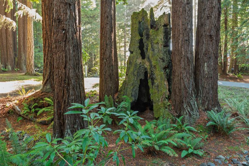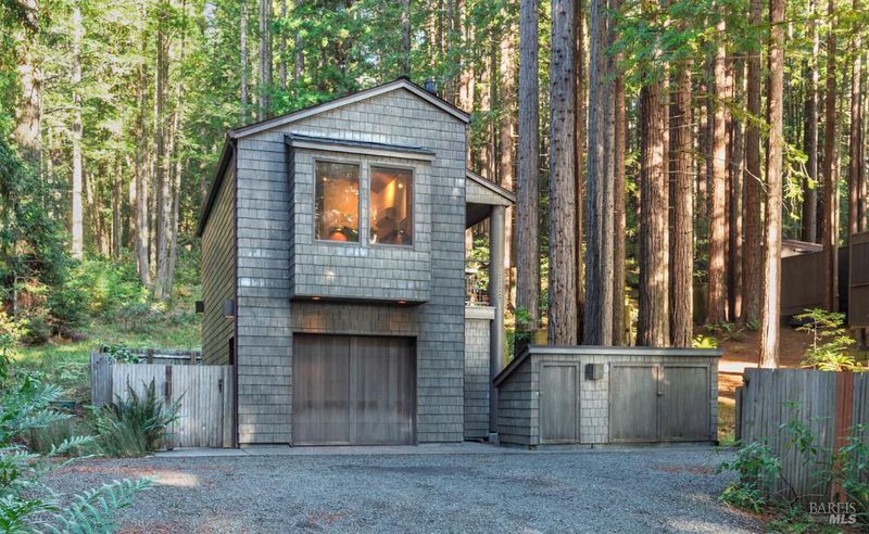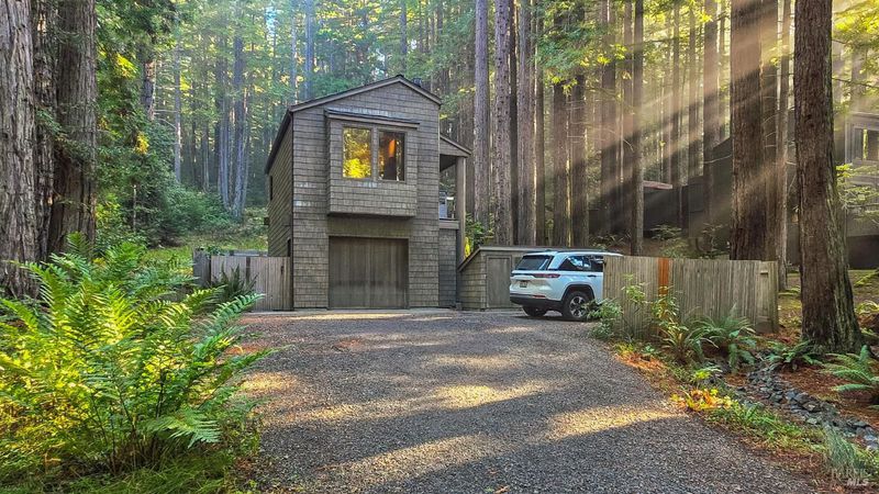 Originally designed by AIA Architect Larry Bogovich as the first building phase to larger detached home, the two story first phase became a full-time home for its original owner and current seller. Nestled in the tall redwoods with partial ocean view, this stunning cottage sits on almost acre and has high end details throughout. Constructed by Rich Fredrickson with cement fiber siding, Anderson windows, window seat, efficient kitchen, lots of storage upstairs and down plus landscaped courtyard, fountain and spa. An Auto Generac generator powers whole house during power outages, a Samsung HVAC unit that provides consistent cooling and heating in the upstairs living quarters, a Level 2 charger near garage for EVs and hybrids, and a BBQ Grill connected to main propane tank on upper deck provides additional cooking options. As a full-time home, a get-a-way, a vacation rental or to build a larger home? The options are almost endless.