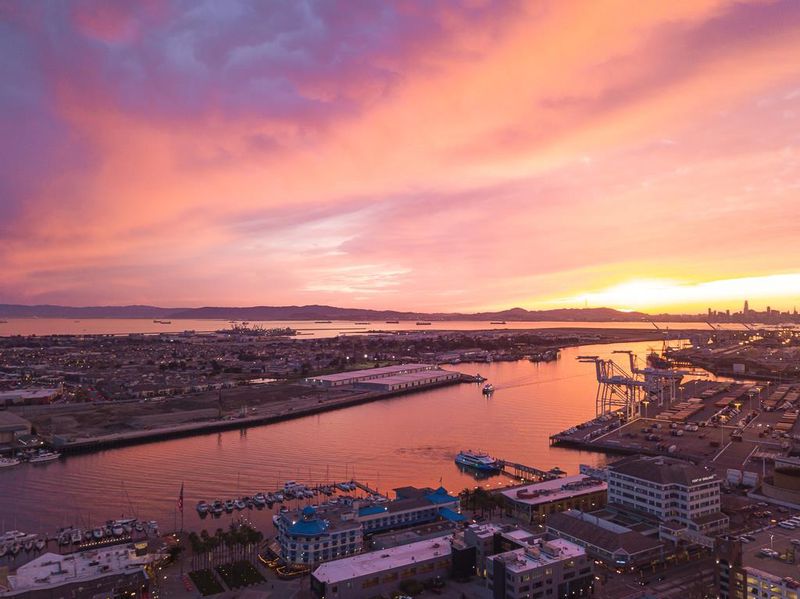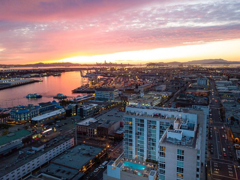 Dramatic two-level penthouse, the absolute jewel of the East Bay luxury condo properties. Two floors of clean, modern architecture, an exterior balcony and an exquisite outdoor living/dining area. Lavish and low-maintenance in a perfect urban space. 20-foot soaring ceilings and panoramic views spanning from the San Mateo to San Rafael Bridge. Floor-to-ceiling windows frame the excitement of The Port of Oakland, watching the lively Harbor at work and The Bay at play. Take in the San Francisco skyline, Twin Peaks, Mt. Tam, and more. The plan is expansive with incredible volume, clean lines, and modern design. Love the new wood floors throughout, stone counters, and professional Thermadorâ„¢ appliances. The floor plan affords upper- and lower -bedroom suites, each with abundant closets, luxurious baths and impeccable views. The open loft makes a great office, entertainment room, or simple retreat opening to a massive rooftop patio adding another 200+ square feet (approx.) to your stylish abode. Picture a lively dinner al fresco, complete with twinkling lights and framed by a gorgeous olive tree - all on the Southwest corner of The Bay's premier luxury building. Arguably, the Best of the Best, this two-level Southwest corner penthouse has never been offered to the public.