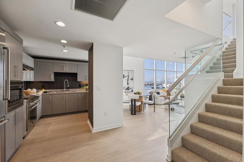 Dramatic two-level penthouse, the absolute jewel of the East Bay luxury condo properties. Two floors of clean, modern architecture, an exterior balcony and an exquisite outdoor living/dining area. Lavish and low-maintenance in a perfect urban space.
