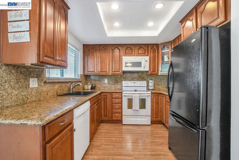 - Dishwasher, Electric Range, Microwave, Free-Standing Range, Refrigerator, Stone Counters, Electric Range/Cooktop, Disposal, Range/Oven Free Standing