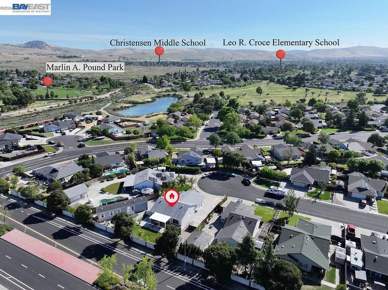 Located in the Springtown neighborhood of North Livermore, this versatile property offers two homes on a 0.26-acre lot, ideal for multi-generational living, rental income, or flexible lifestyle needs. Situated on a quiet cul-de-sac with no rear neighbors, the setting provides added privacy and functionality. The main residence features approximately 1,405 sq ft with 4 bedrooms and 2 bathrooms, offering a traditional floor plan with a formal living room highlighted by a classic brick fireplace and a separate formal dining room. The kitchen is equipped with granite countertops and recessed lighting, creating a bright and functional space for everyday living. Recent updates include fresh interior and exterior paint and new carpet, enhancing the home's overall appeal. The detached ADU is approximately 728 sq ft and a rare 2-bedroom, 1-bath layout. It features its own private entrance, fenced yard, storage area, laundry room, and an open kitchen and living room design, perfect for extended family or rental use. The expansive lot includes a covered patio, well-maintained lawn, storage shed, a variety of fruit trees including plum, lemon, and nectarine, and a large side yard with ample space for RV or boat parking.