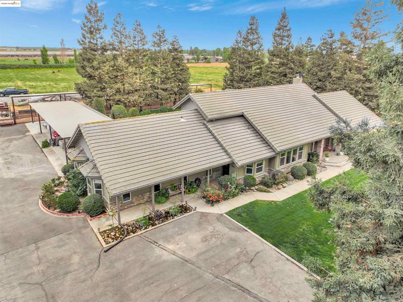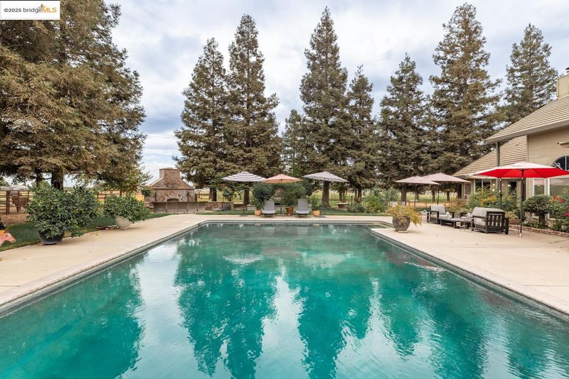 This custom estate was designed for resort-style living on nearly ten acres of land with every possible amenity! The gated entry leads to the redwood-shaded home with soaring ceilings, expansive living spaces, beautiful stone and tile throughout, and a dream kitchen including commercial grade appliances and double counters. Entertain your guests in the two outdoor covered patios with a grill surrounding a large pool with a stone outdoor fireplace. Stay awhile in the 4 generous bedrooms and 3 full baths, including a spa-like guest bathroom and an additional private ADU with a bedroom and bathroom. Equestrian facilities include OID-irrigated pastures, two large arenas, a gorgeous barn with 3 oversized stalls, a hay loft and a tack room, five 20x20 covered paddocks with a wash station, and that's not all: an enormous 75x68 foot shop includes 2 offices and electrical and plumbing for home business or hobbies. Words don't do it justice, come and see!
